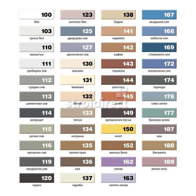 Предлага се в широка гама от цветове, съответстващи на тези на уплътнителя MAPESIL AC, и може да се смесва с MAPEGLITTER и MAPECOLOR METALLIC за постигане на специални декоративни ефекти.