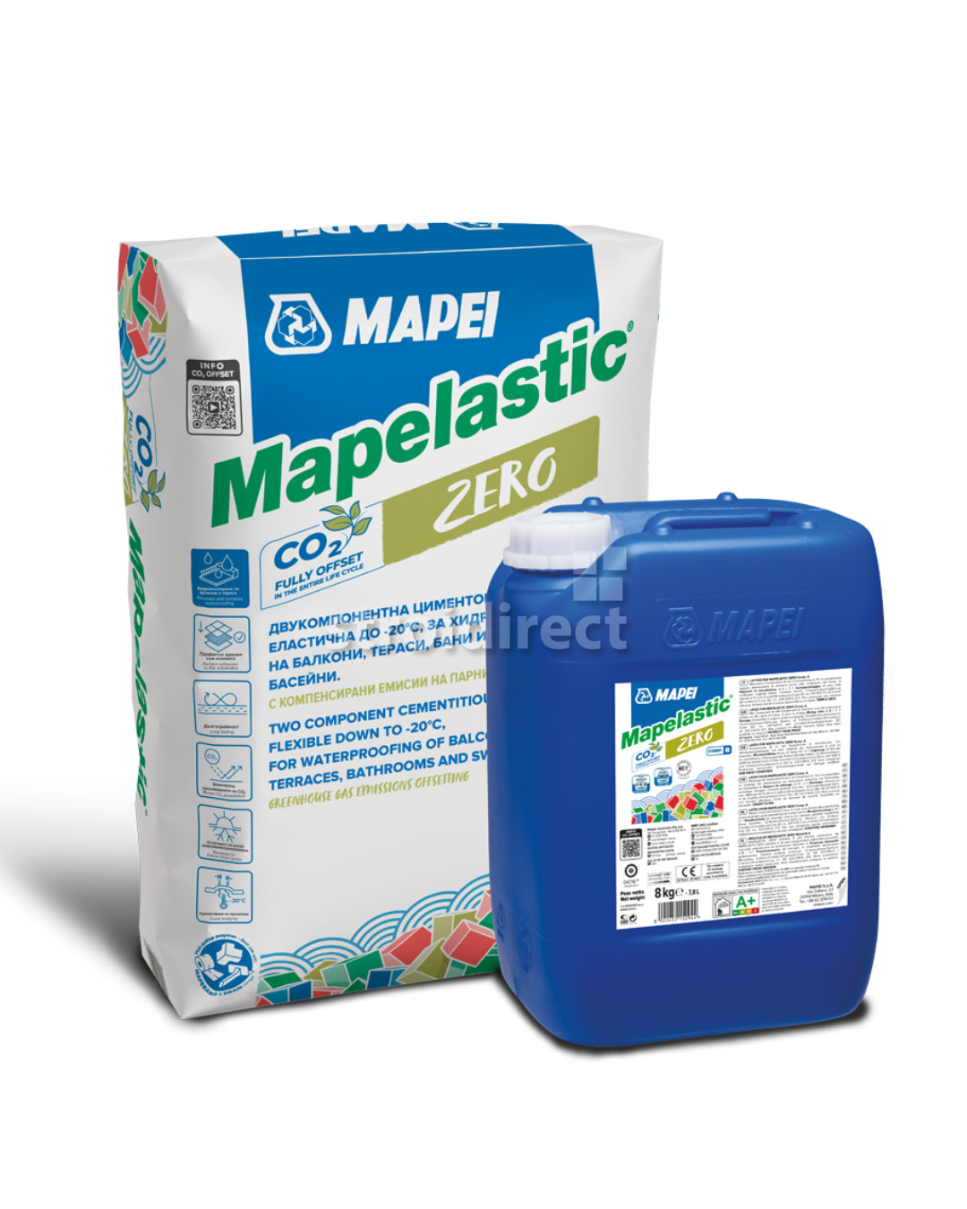 MAPELASTIC ZERO e двyкомпонентен еластичен циментов разтвор за трайна, устойчива, лесна и бърза хидроизолация на балкони и тераси, създаден благодарение на повече от 30 години опит в използването на MAPELASTIC. MAPELASTIC ZERO не само елиминира инфилтрации, които могат да доведат до влошаване и по-кратьк експлоатационен живот на конструкциите, но също така допринася за намаляване на емисиите на СО2, като ги компенсира чрез придобиване на сертифицирани екологични кредити.