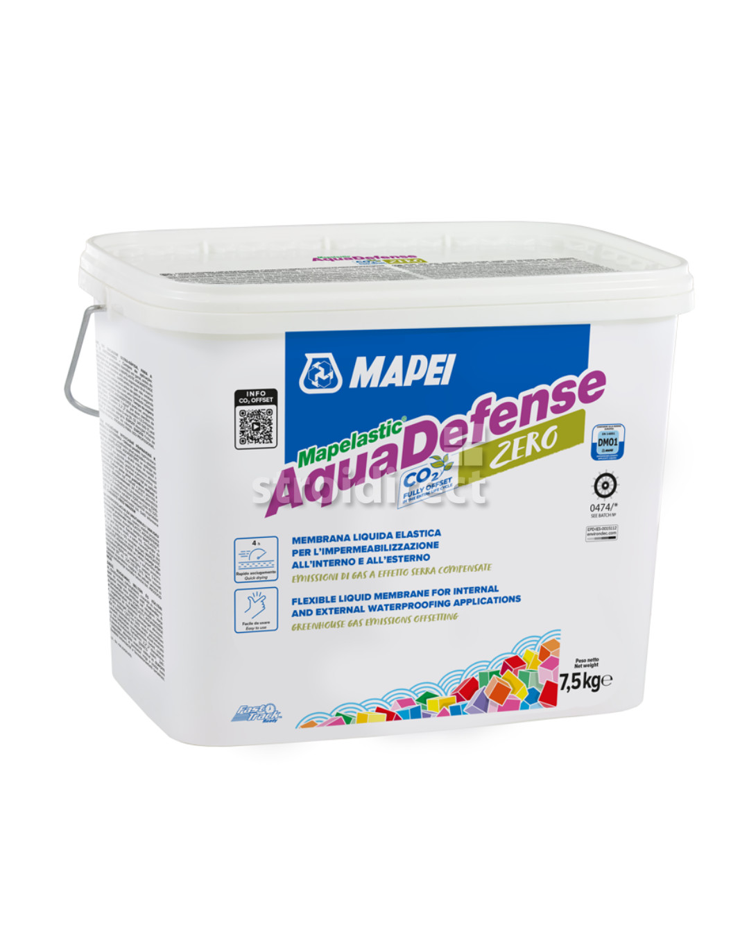 MAPELASTIC AQUADEFENS ZERO има маркировка EN 14891 като хидроизолационен продукт, прилаган под покритие.