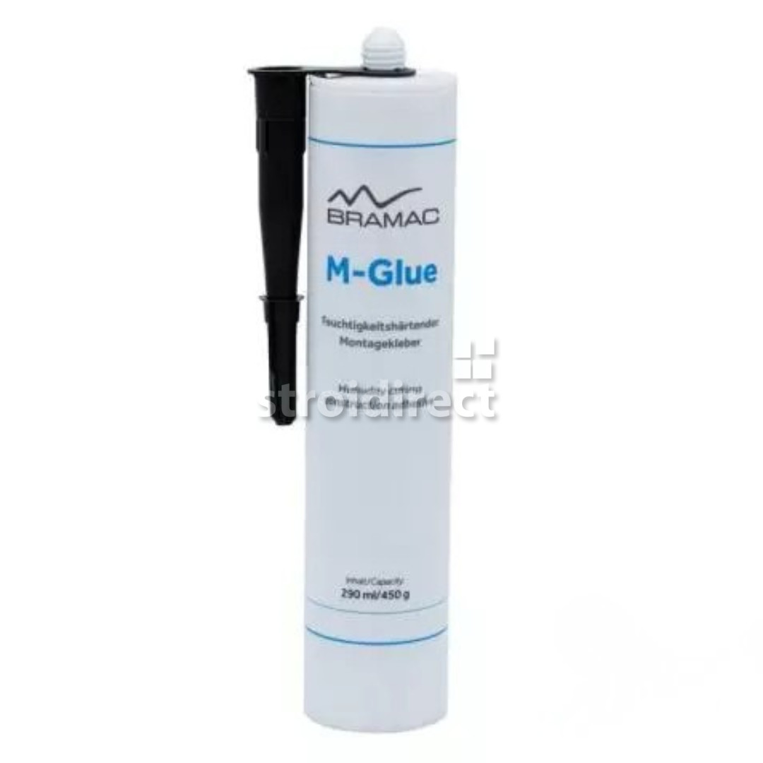 M-GLUE e еднокомпонентен модифициран силан полимер, който служи за уплътняване на обшивките по покрива. Лепилото се втвърдява във влажна среда и залепва бързо към метални покриви и влажни повърхности. Залепването протича в рамките на 1-2 минути, а пълното втвърдяване до 24 часа.
