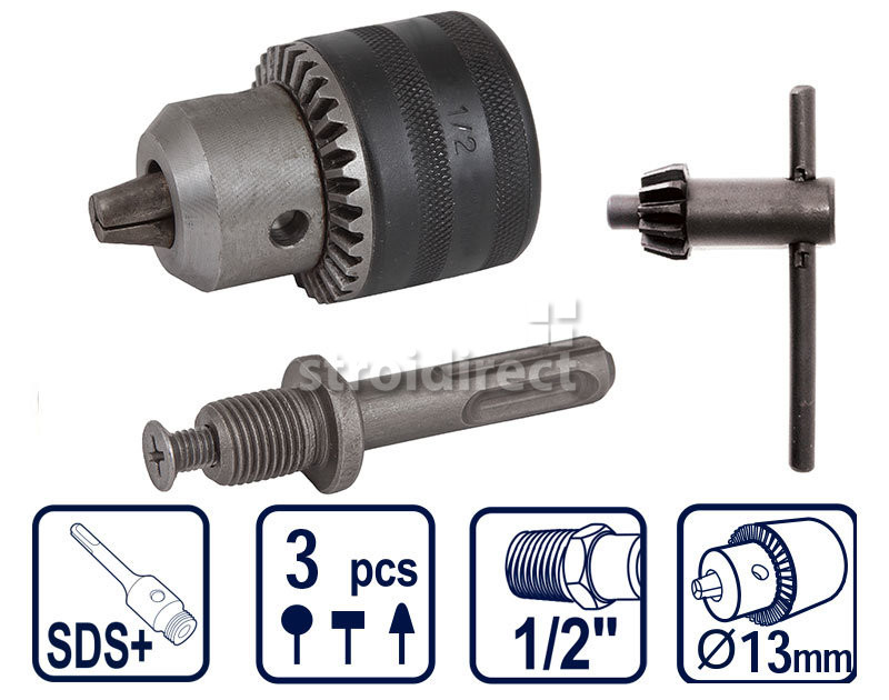 Патронник за бормашина Raider е с размер на патроника 13 мм. Монтира се лесно с включения в комплекта адаптер SDS-plus. Дава възможност за използване на свредла с цилиндрична опашка. Корпусът на патроника е изработен от метал.