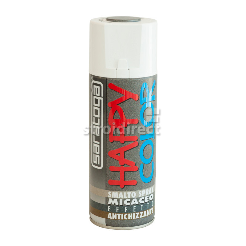 Акрилна спрей боя HAPPY COLOR SARATOGA с метален хамър ефект, съдържащ блестящи метални пигменти. Предназначен е за боядисване и предпазване на повърхности като метал, картон, дърво, камък, гипс, изкуствени материали и PVC. Акрилната спрей боя притежава висока покривност, устойчива е на климатични промени и има отлични антикорозионни свойства.