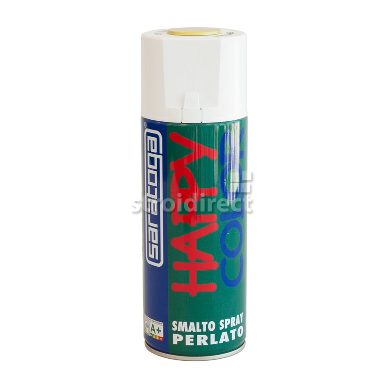 Спрей боята на HAPPY COLOR SARATOGA е бързосъхнеща алкидна боя в цвят перла жълт. Намира приложение на открито и закрито, като изсъхва на пипане за 15 минути, а за пълното изсъхване са нужни до 45 минути.